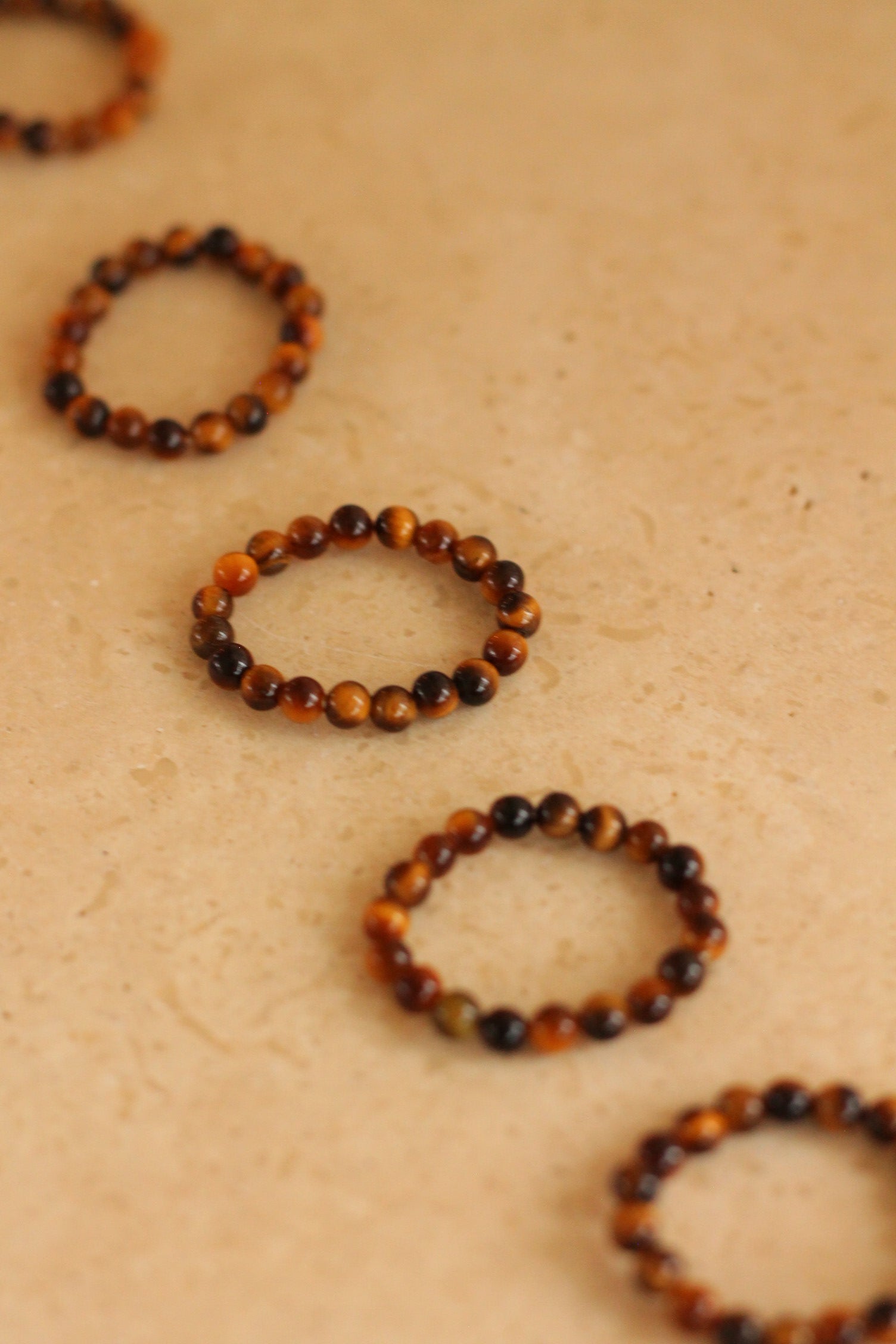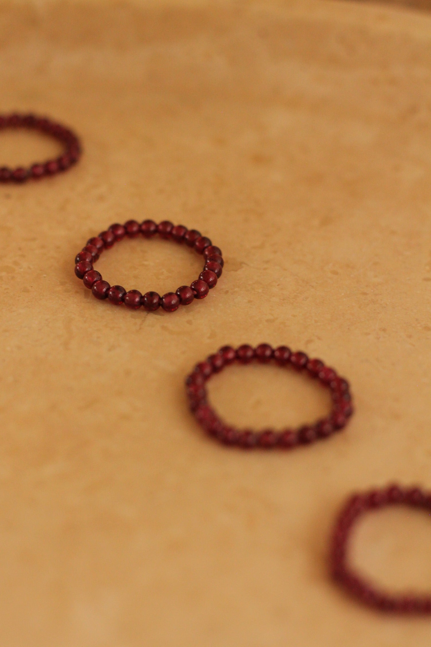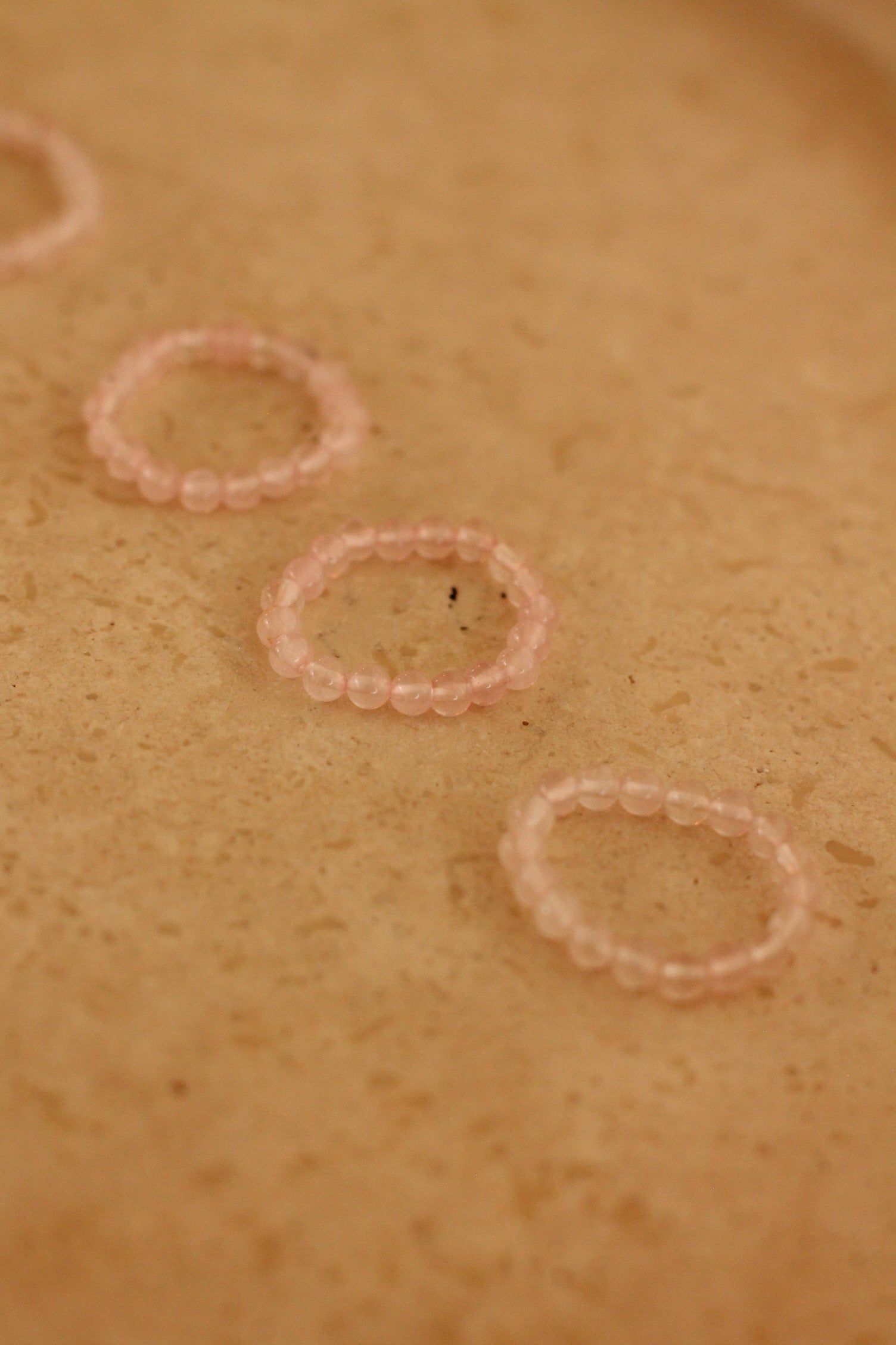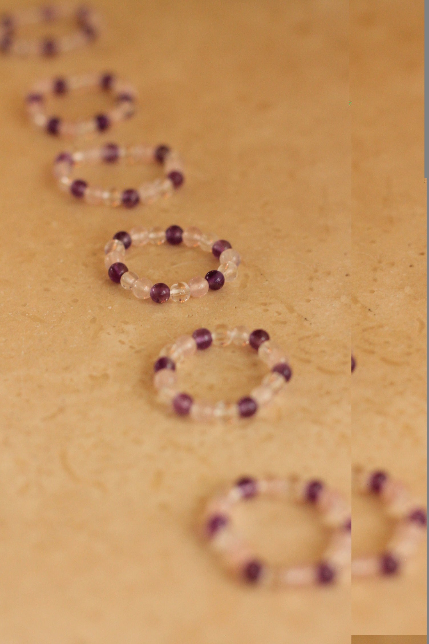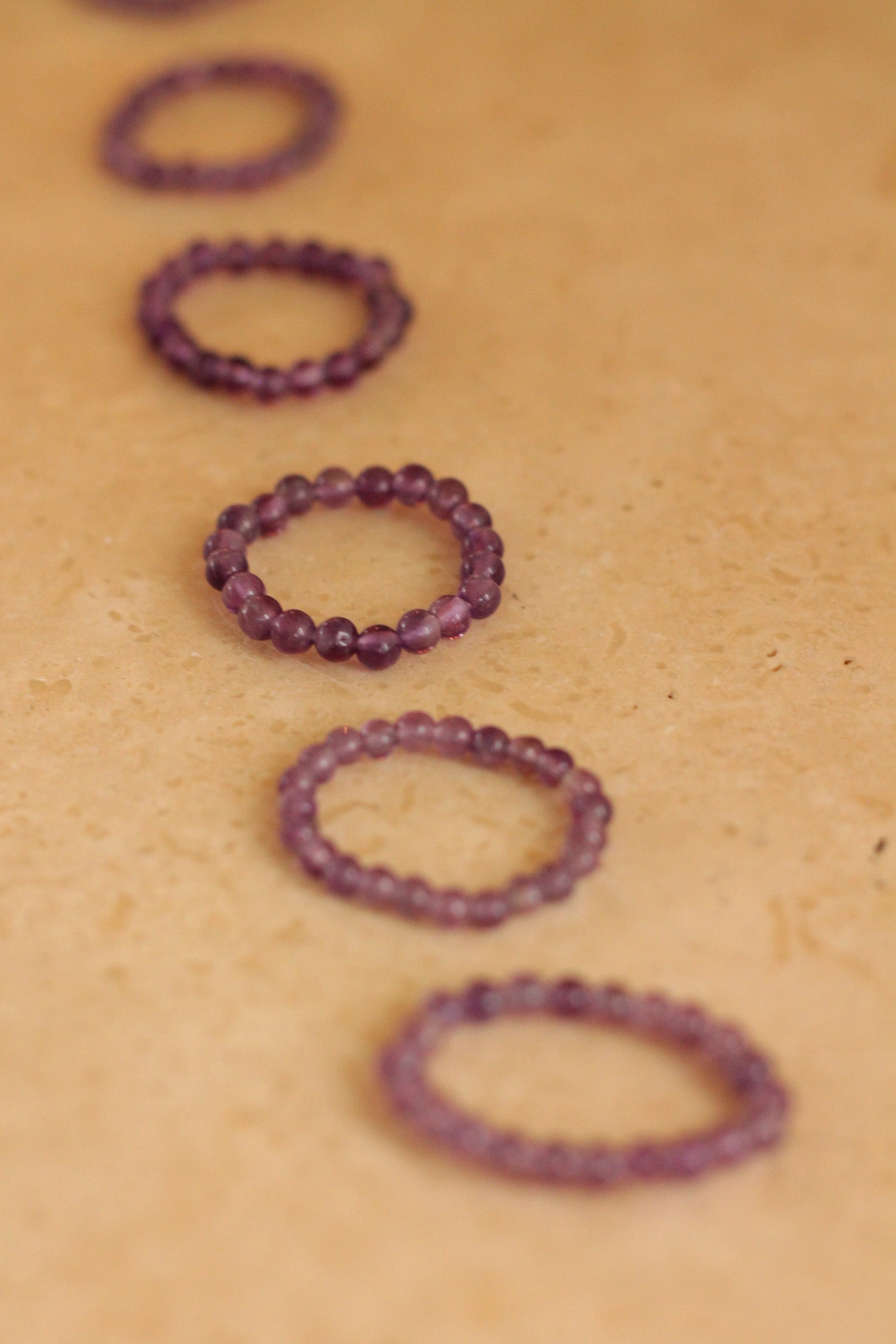 De ring is gemaakt van kleine edelsteenkraaltjes van 3,4 tot 4 mm, geregen op een elastisch koord voor een comfy en aanpasbare pasvorm.